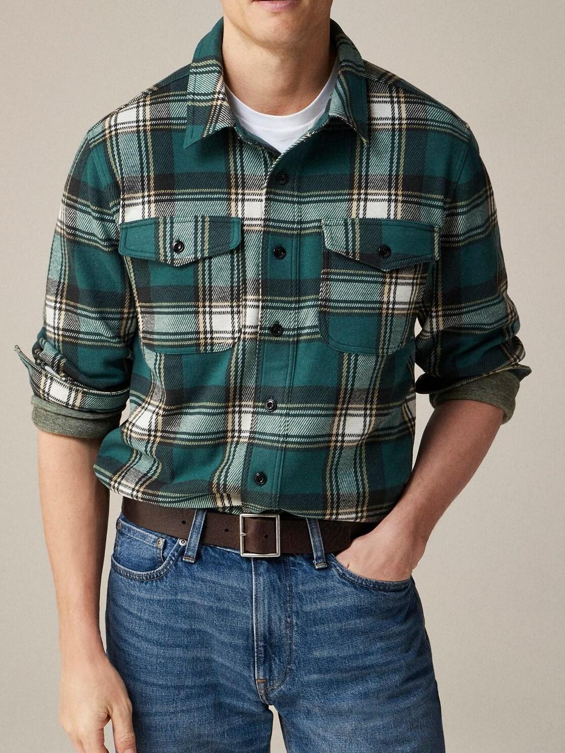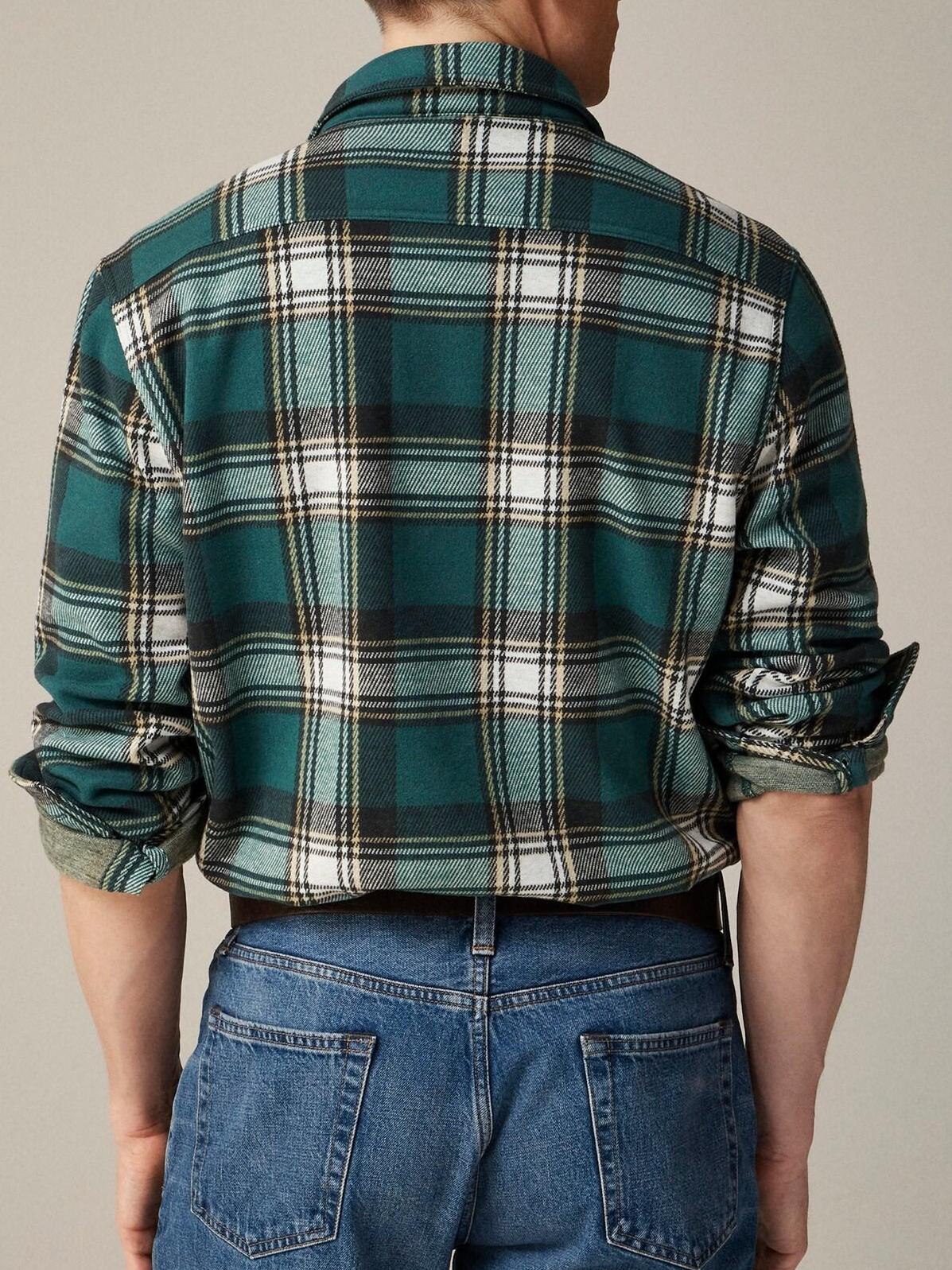 Green And White Plaid Long Sleeve Shirt