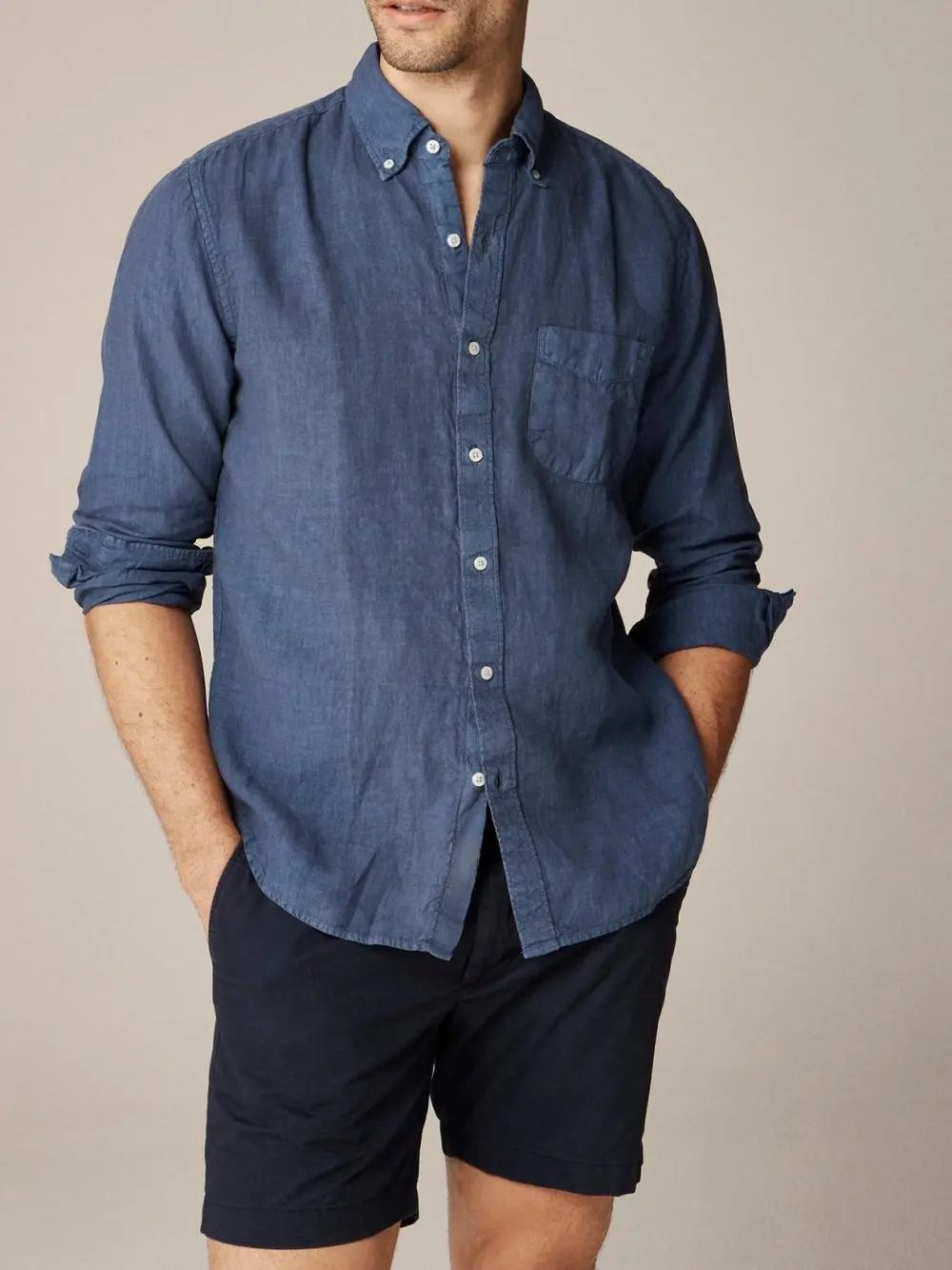 Navy Blue Long Sleeve Linen Shirt