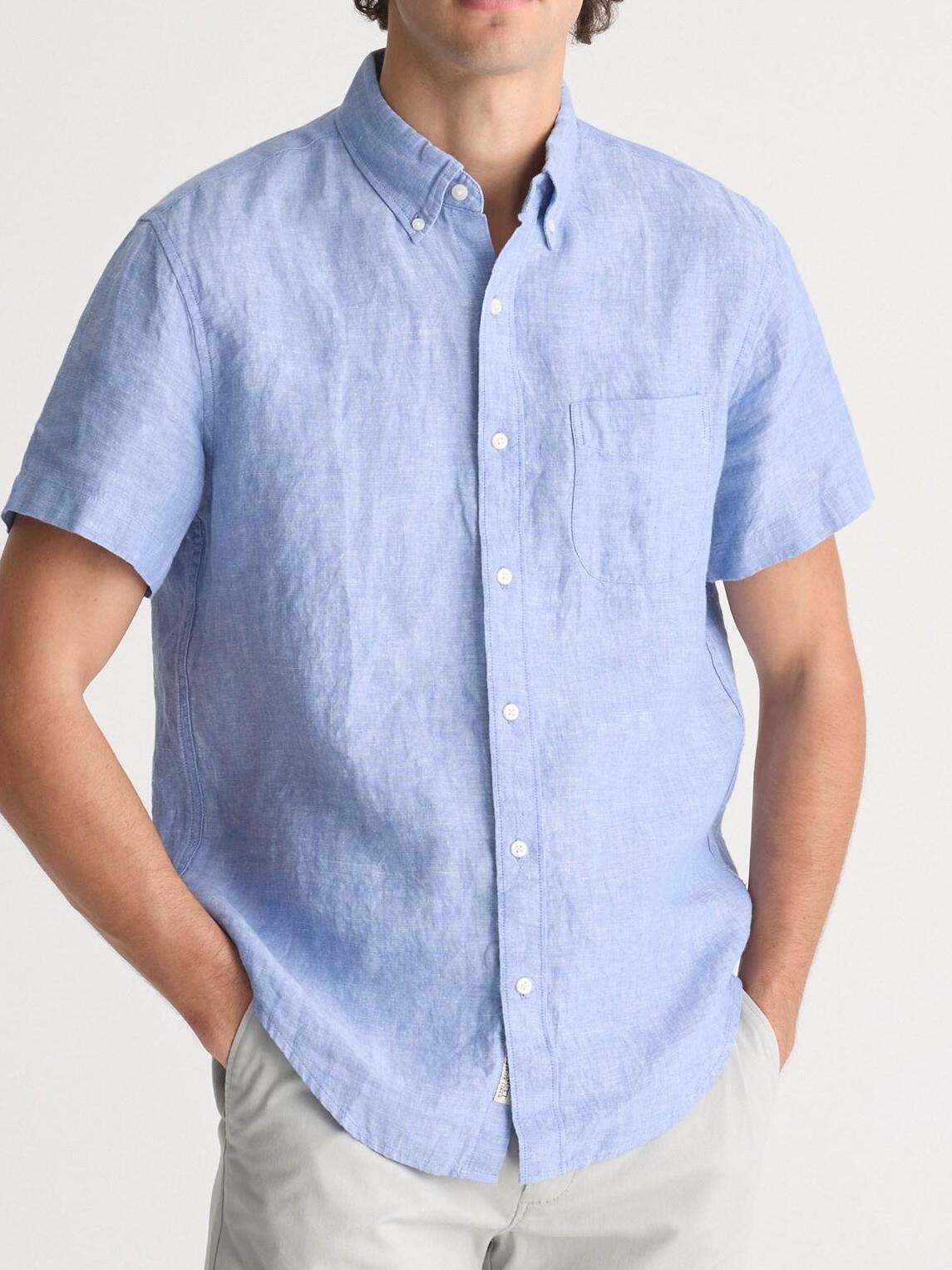 Sky Blue Short Sleeve Linen Shirt