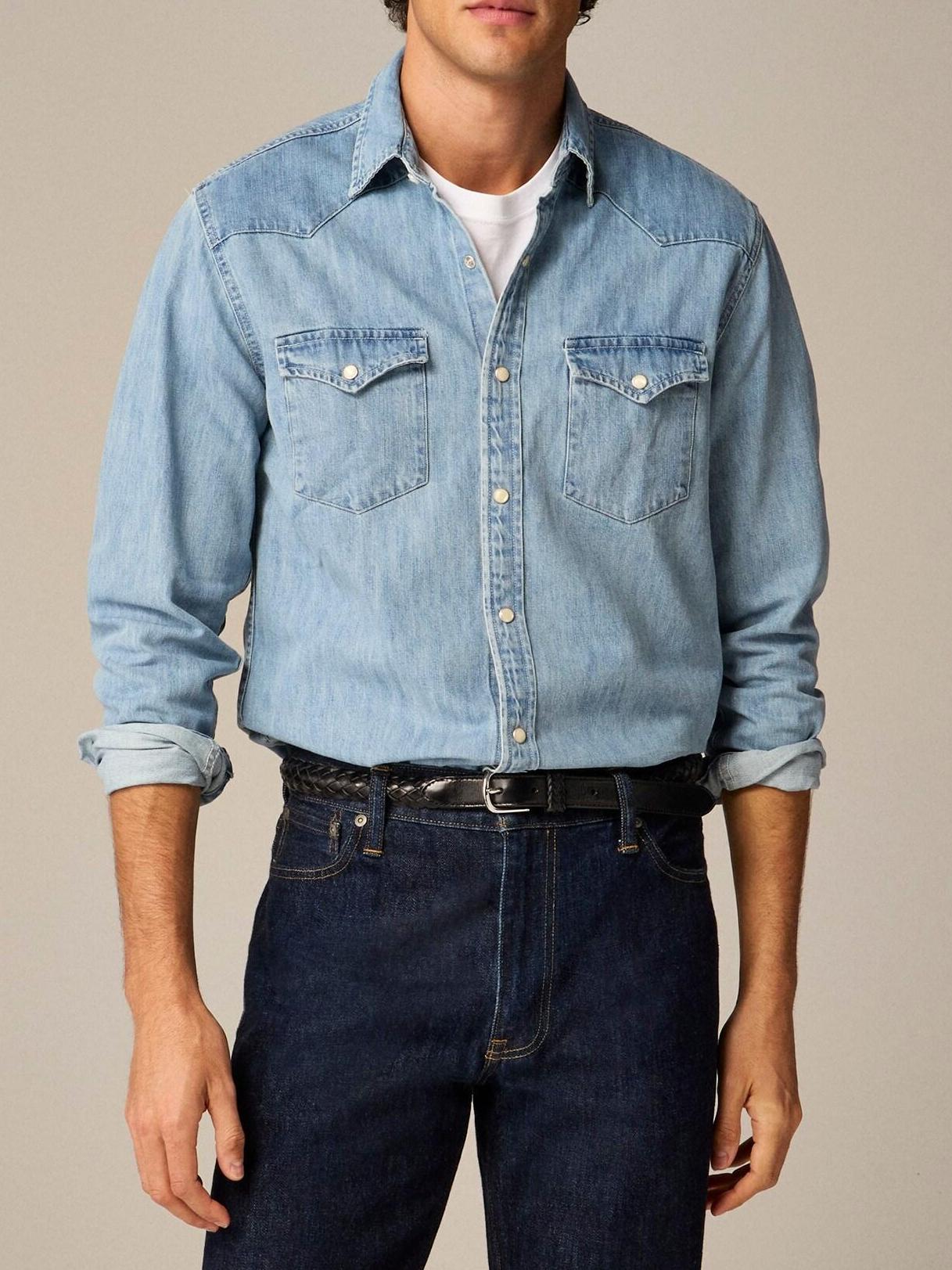 Light Blue Cotton Washed Denim Long Sleeve Shirt