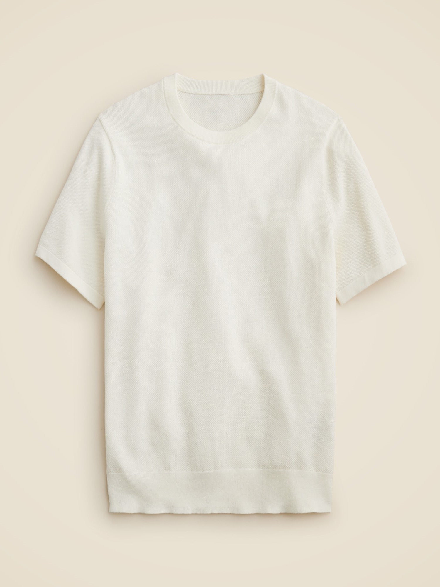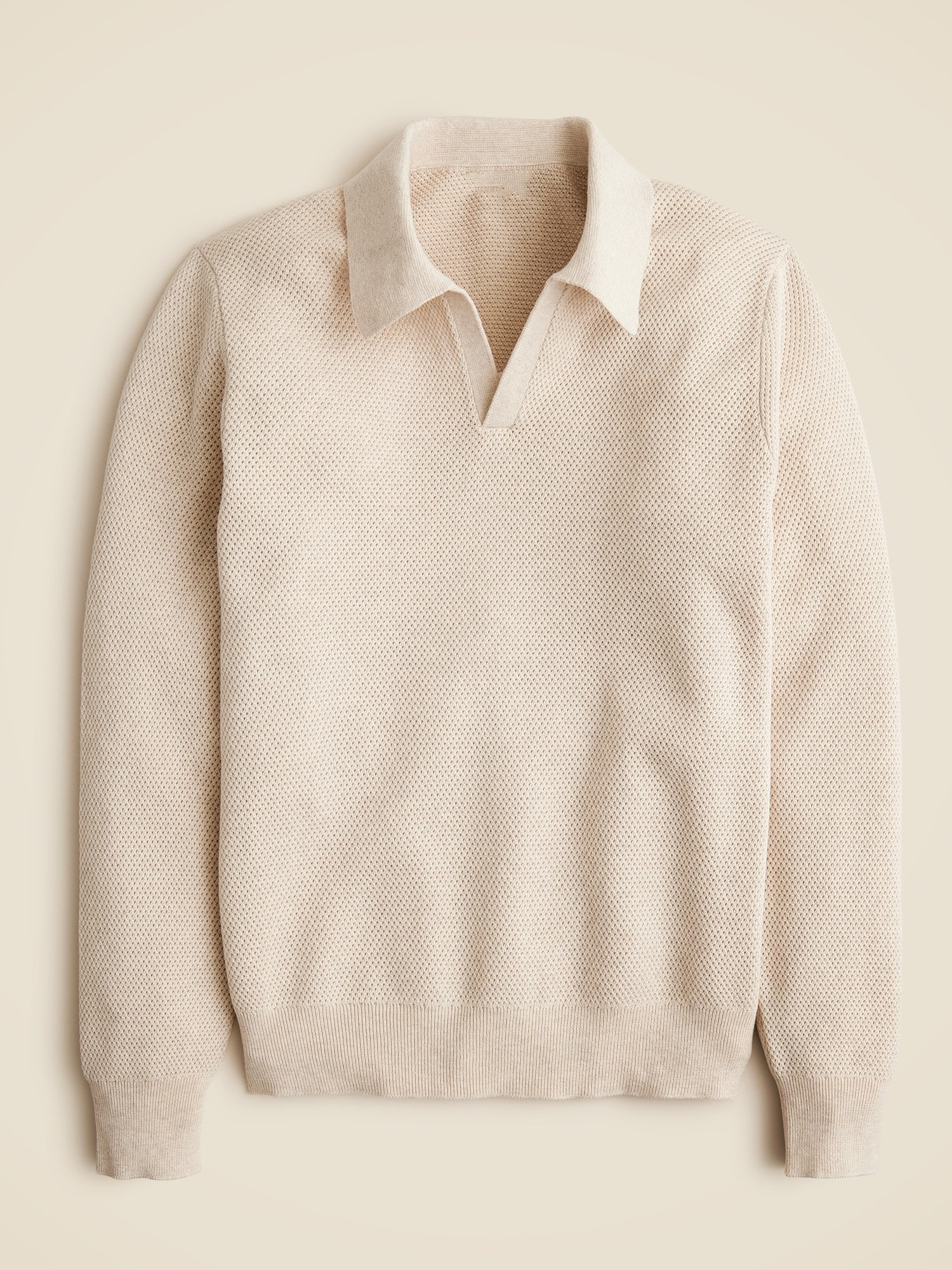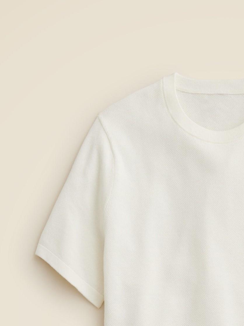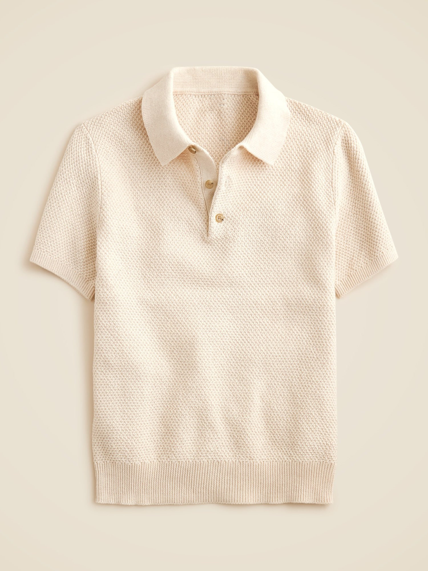 Cream Colored Short Sleeve Polo Style Knit Sweater