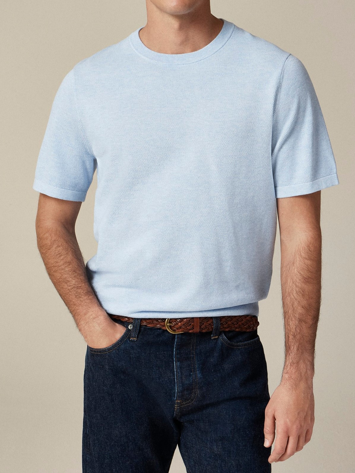 Light Blue Long Sleeve Polo Style Knit Sweater