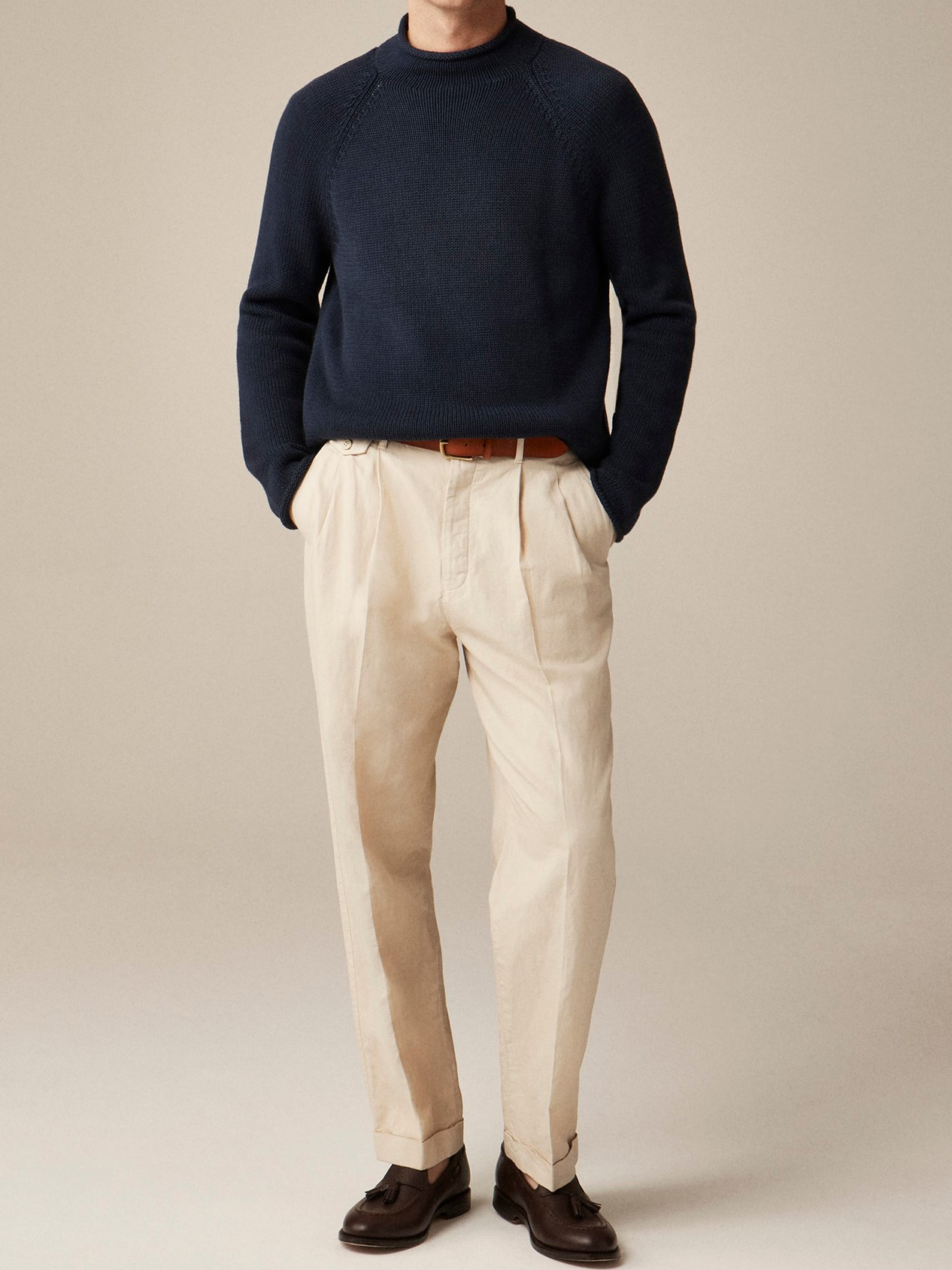 Our Rollneck sweater is back from the archives and is just as versatile now as it was then. It's knit in a dense cotton that's simultaneously sturdy and breathable and looks good with just about everything.