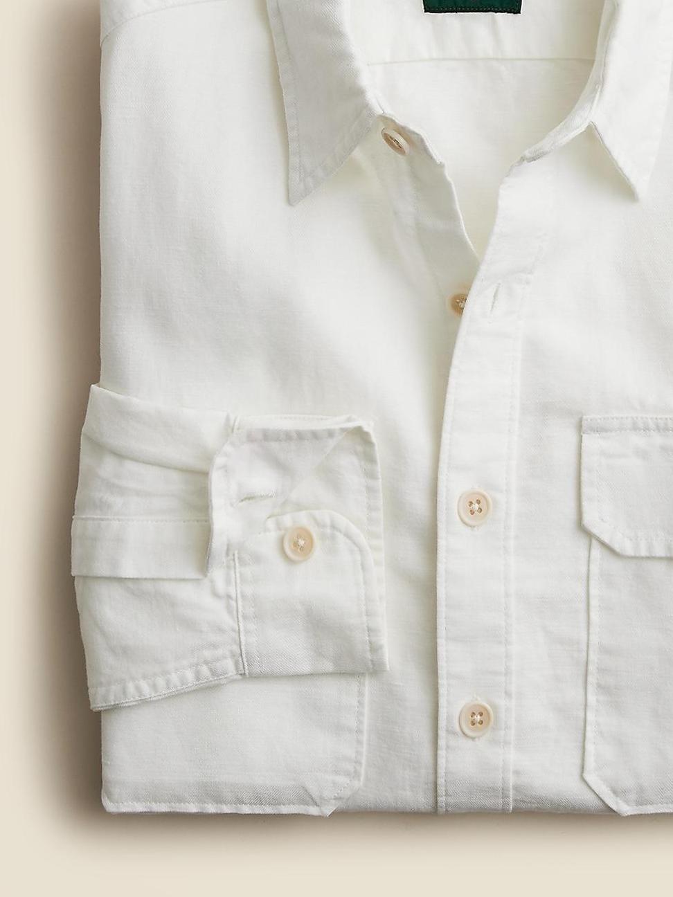 this lightweight linen-cotton twill shirt is ready to take on everything you can throw at it. It's naturally breathable and subtly textured, with authentic details like two button-flap chest pockets. Wear it on its own, over a tee or as a light shirt-jacket when you need a little something extra.